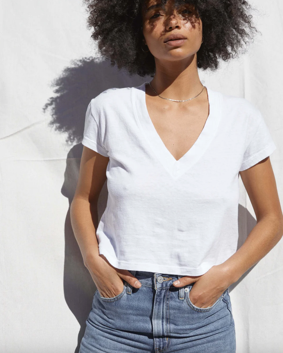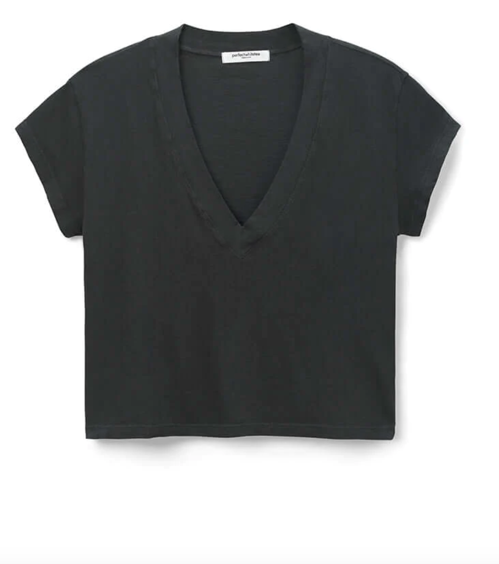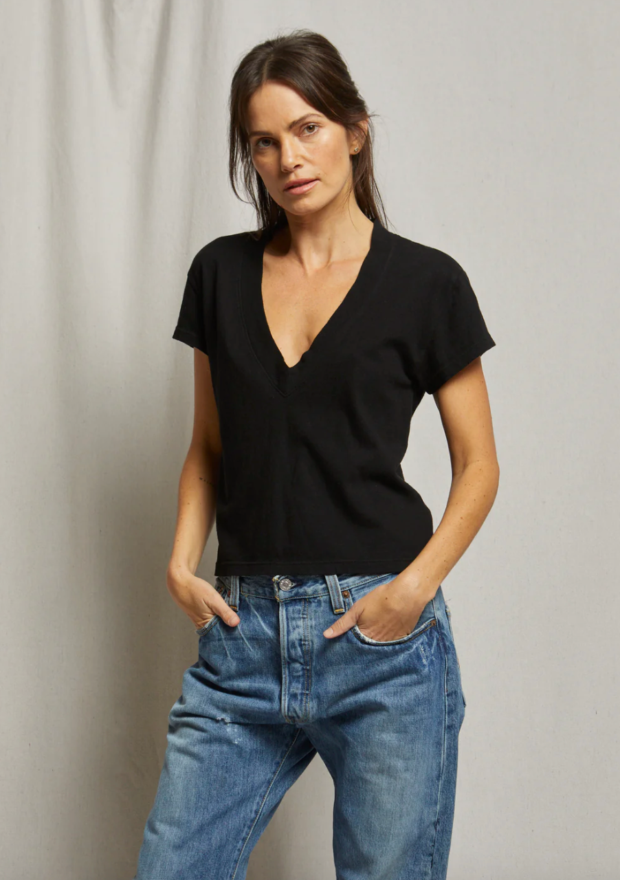 - the perfect deep v neck. dress up for date night or dress down with denim.