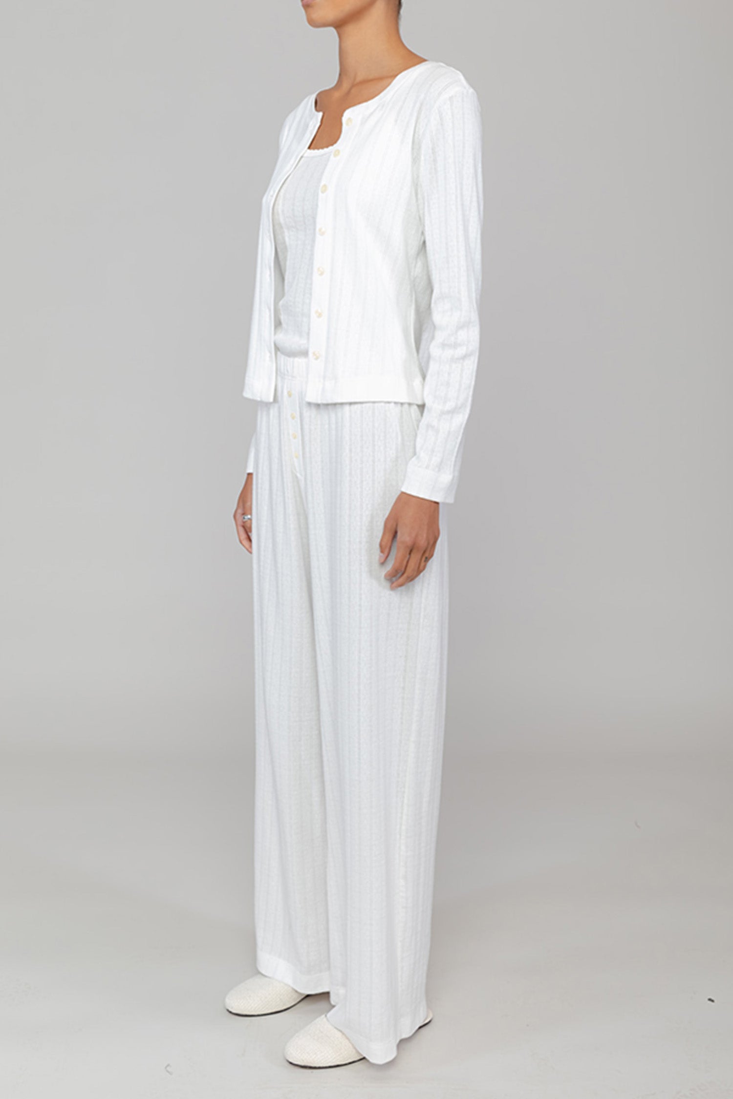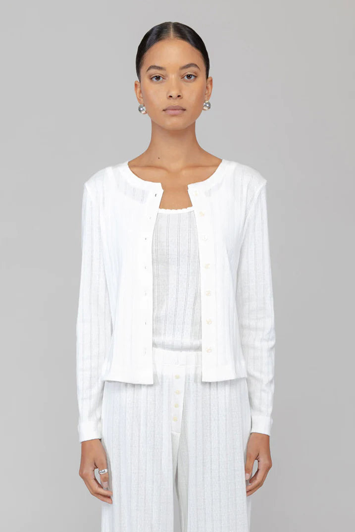 - A must-have classic cardigan in a timeless soft cotton pointelle that’s a lightweight, warm-weather ready layer.