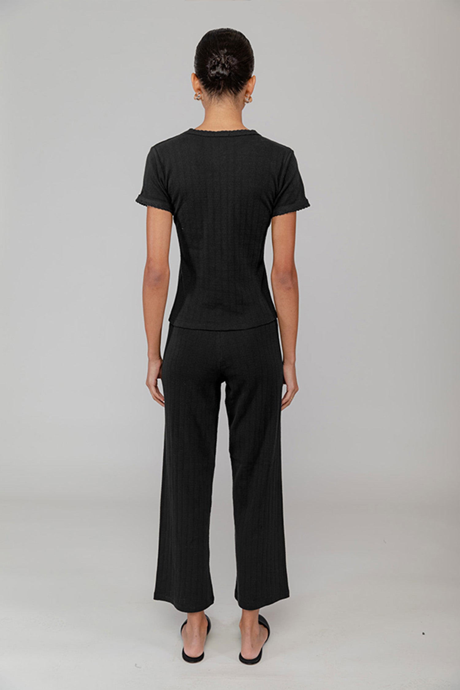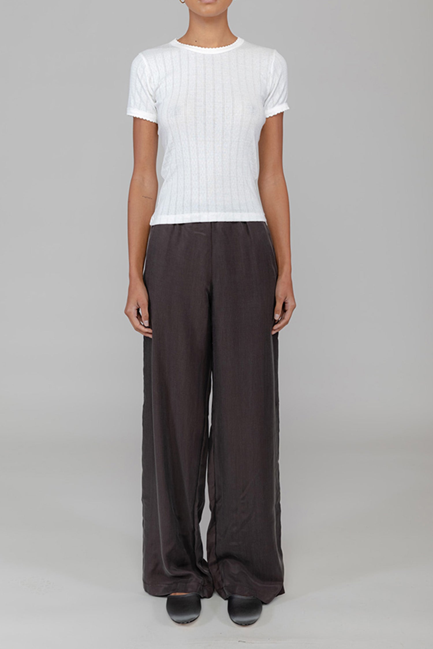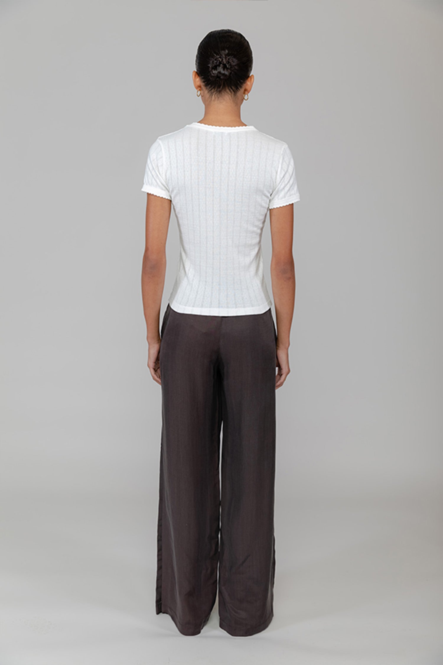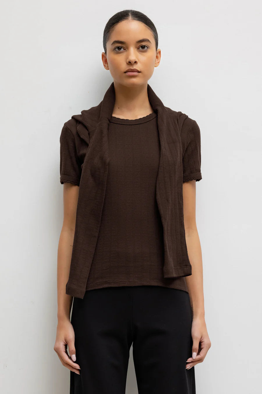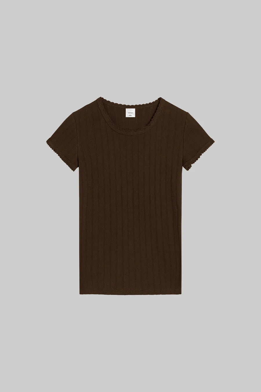 - the Pointelle Slim Fit Tee features classic lingerie inspired details - pinhole stripes, eyelets and scalloped edges
