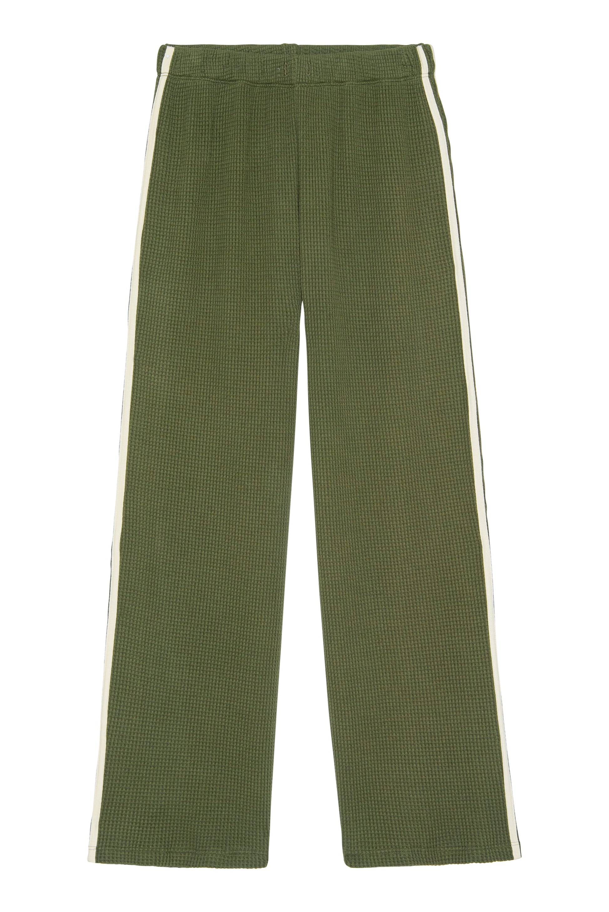 - The Thermal Crop Stripe Pant is crafted from soft, breathable thermal with a textured waffle finish. Designed with a cropped silhouette, double stripe detail, and an adjustable drawstring waistband.