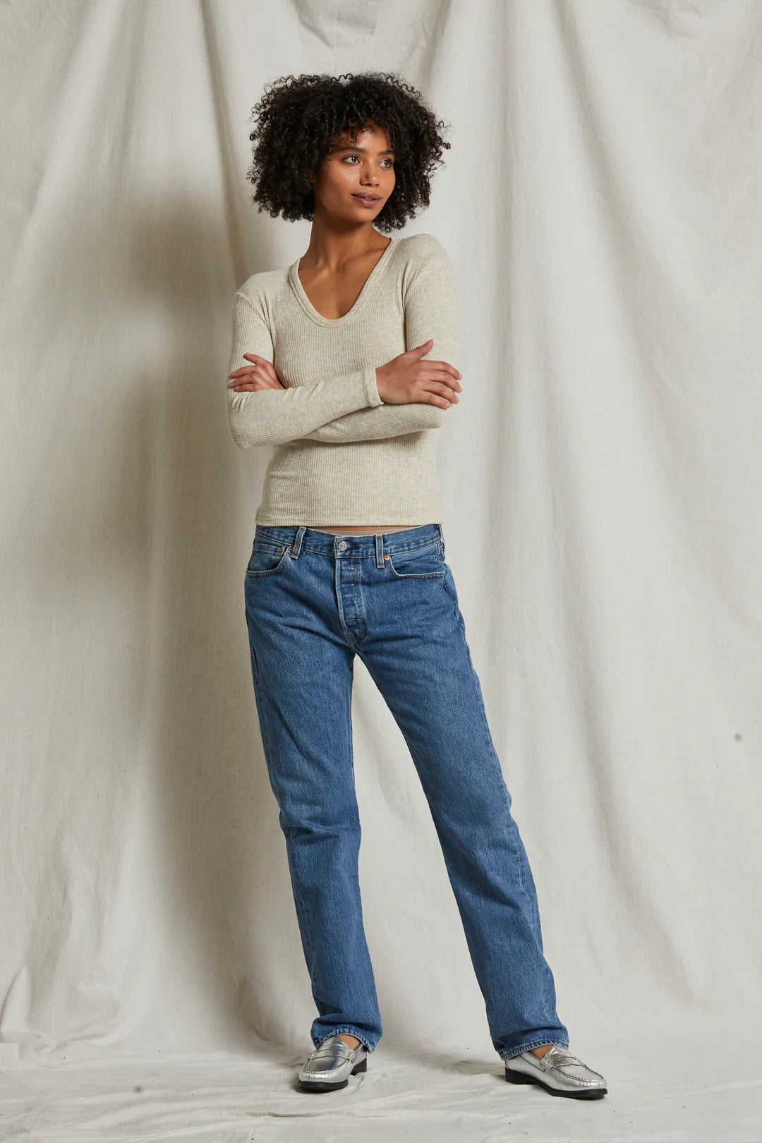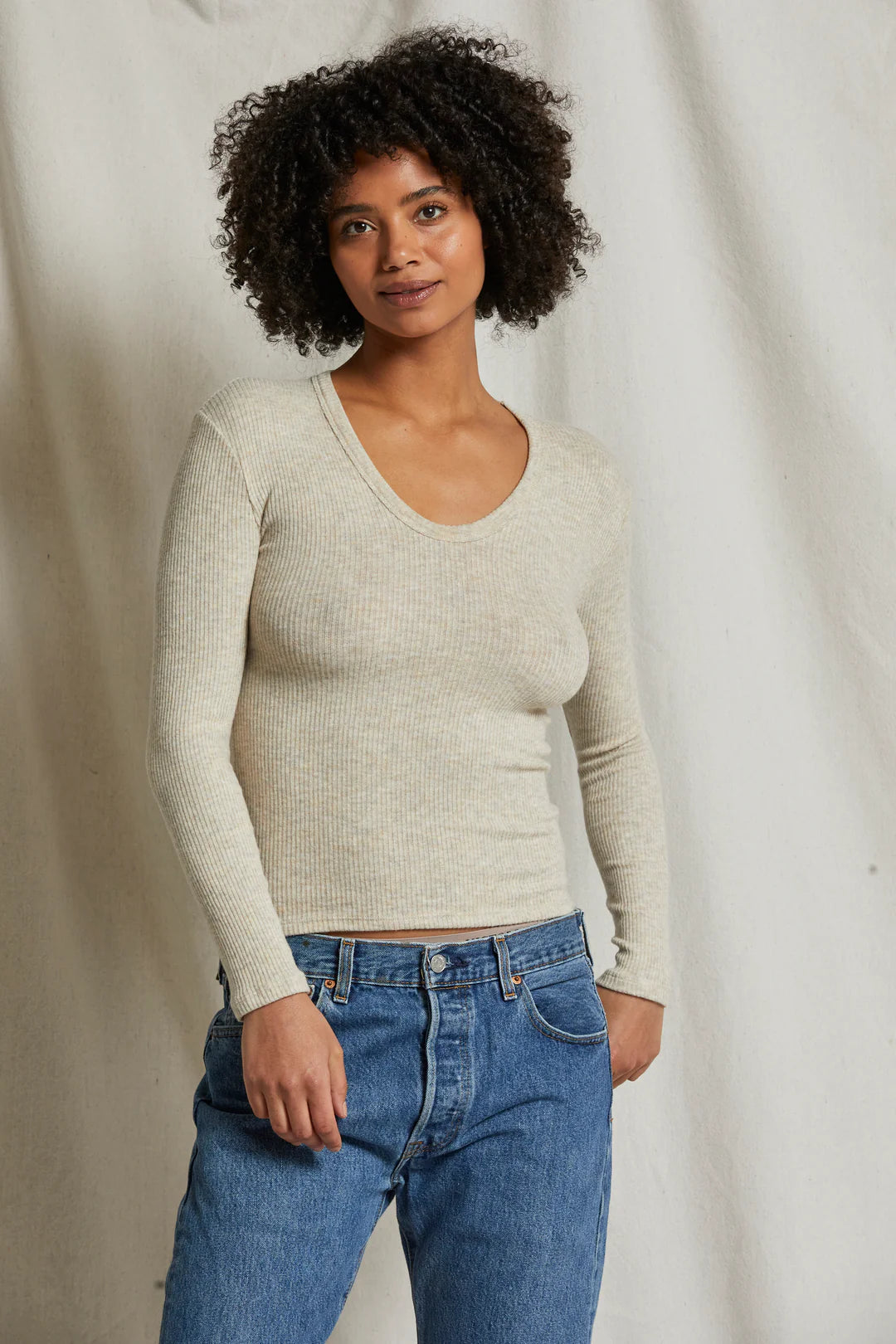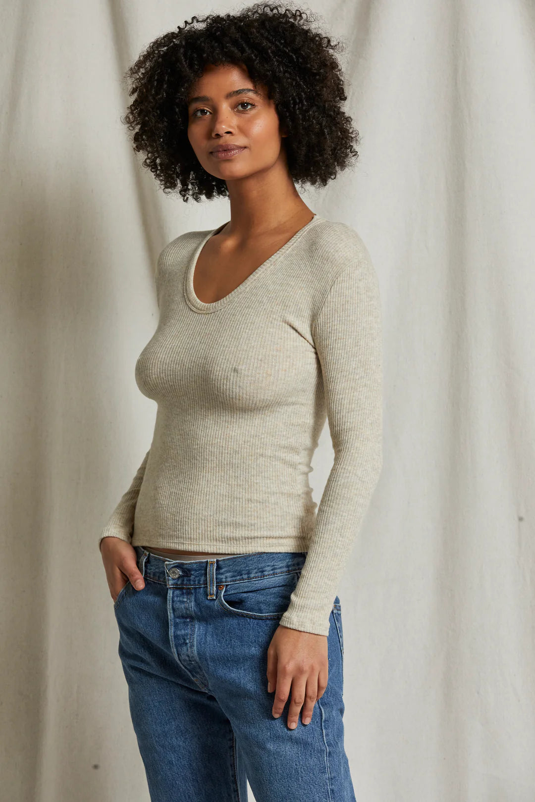 WHITNEY SWEATER RIB U NECK LONG SLEEVE